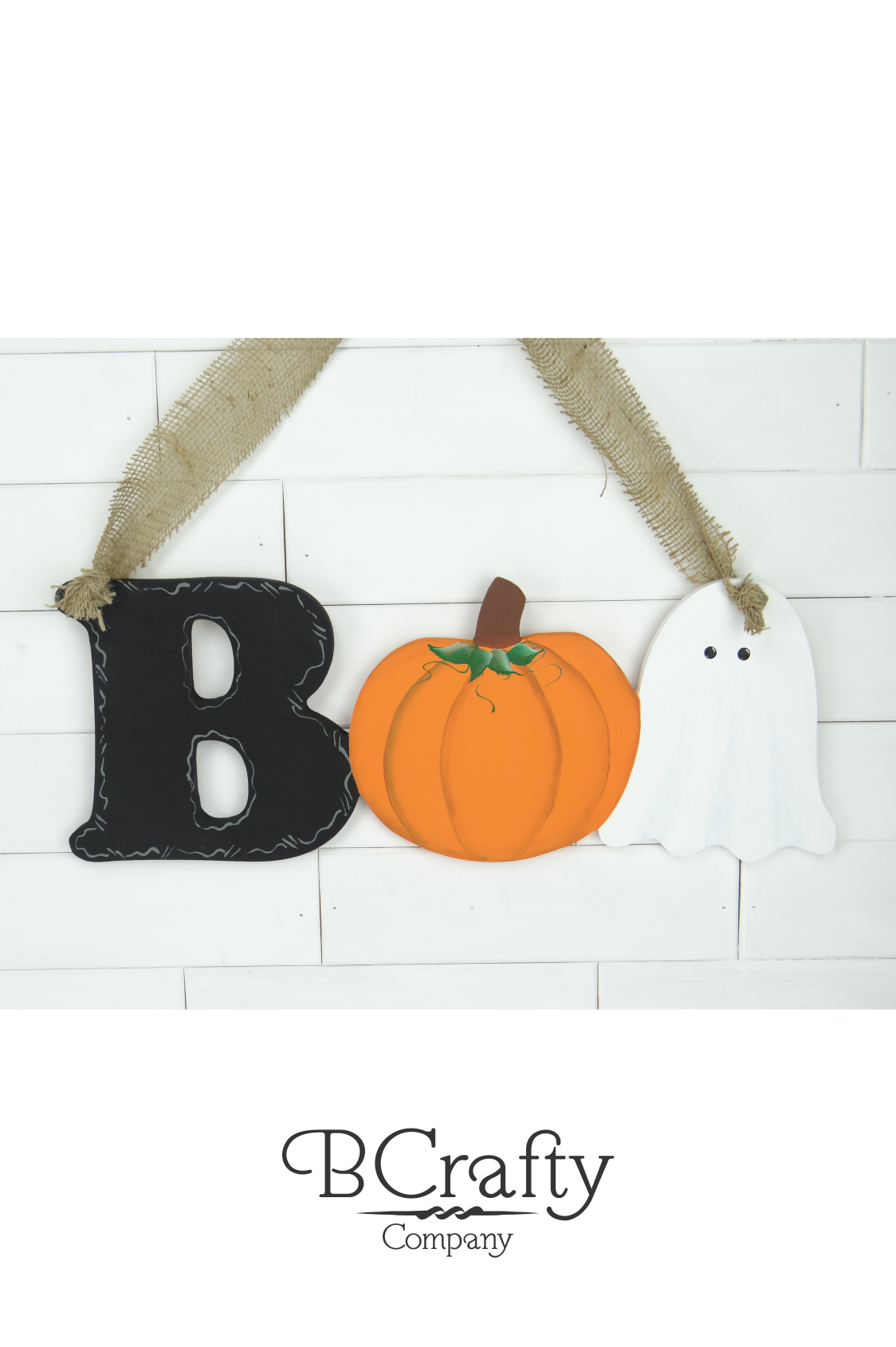 Wooden boo cutout for fall decorating.